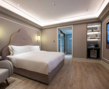 酒店拥有一百余间豪华舒适的江景客房,位于14层-19层,寝具皆选用星级酒店使用的美国金可儿品牌,采用符合人体工程学的床垫,记忆棉双面枕等“零压”舒眠床品,轻触软绵舒适,让您即使在睡眠中也能安享法式浪漫与完美的质感体验,同时酒店为您在五层提供24小时免费健身与洗衣中心,方便您在工作与休闲之余释放活力,保持健康体魄,尽享高效便捷。