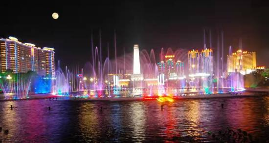 秋收起义广场广场位于萍乡市城北,总面积346亩,绿化覆盖率达72%。广场以萍水河为纽带,由中心广场、西北广场、东南广场、东北广场组合而成。她的建设旨在纪念秋收起义这一伟大历史事件,广场建筑按轴线设计分布,南北轴线上建设有户外电子屏、升旗台、音乐喷泉、纪念碑及纪念碑基座内的秋收起义陈列馆;东西轴线上亭廊、花架、石雕与艺术膜结构完美融合,使广场集纪念展览、庆典集会、休闲娱乐等多种功能于一体,成为萍乡如诗如画的“城市会客厅”。